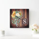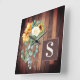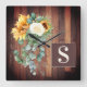 Sunflowers Rustic Wood Eucalyptus Leaves Monogram Square Wall Clock