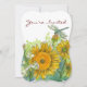 A pretty springtime 60th birthday party invitation decorated with bright yellow sunflowers, white snapdragons and a dragonfly drawn in pen and ink with watercolor. You can change the wording to fit your needs.