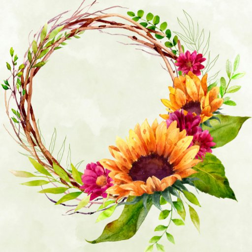 Design features a printed coloured with floral element in shades of yellow, pink and green over greenery leaves and sunflowers on a light green watercolor background.. Great for your wedding celebrations!
