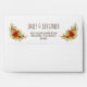 Beautiful white envelope decorated with a sunflower and rose arrangement on the cover, and on the flap cornering your name and return address. The rustic envelope has a wood grain liner with string lights.
