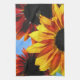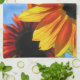 Brighten your day with this gorgeous hand towel.Three brilliantly coloured sunflowers are shining in illuminated backlight by the sunlight streaming through the petals. The flowers display a palette of gold, yellow, orange, red and brown. The blue sky completes this abstract composition of colour and form.
