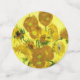 Sunflowers Vincent van Gogh. Still life on a yellow background. A bright bouquet of sunflower flowers stand in a vase. Reproduction of famous works of art images in the public domain.