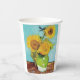 Sunflowers (1888) Vincent van Gogh. Still life on a blue background. A bright bouquet of sunflower flowers stand in a vase. Reproduction of famous works of art images in the public domain.