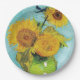 Sunflowers (1888) Vincent van Gogh.Still life on a blue background. A bright bouquet of sunflower flowers stand in a vase. Reproduction of famous works of art images in the public domain.