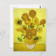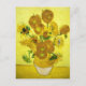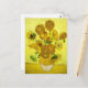 Sunflowers Vincent van Gogh. Still life on a yellow background. A bright bouquet of sunflower flowers stand in a vase. Reproduction of famous works of art images in the public domain.