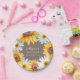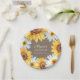 Rustic yellow and brown sunflowers and white daisies with beautiful green leaves on brown baby girl baby shower custom paper plate. Personalised with the name of the mummy-to-be and her shower date. Perfect for summer or fall celebrations. Contact me for assistance with customisation or to request matching products