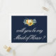 This card has watercolor painted sunflowers and an elegant navy blue colour. The text and colours can be personalised.