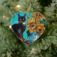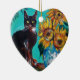SUNFLOWERS WITH BLACK CAT IN BLUE TURQUOISE HEART CERAMIC TREE DECORATION