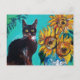 SUNFLOWERS WITH BLACK CAT IN BLUE TURQUOISE POSTCARD