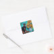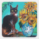 SUNFLOWERS WITH BLACK CAT IN BLUE TURQUOISE SQUARE STICKER