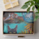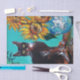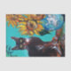 SUNFLOWERS WITH BLACK CAT IN BLUE TURQUOISE TISSUE PAPER