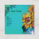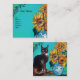 SUNFLOWERS WITH CAT IN BLUE TURQUOISE SQUARE BUSINESS CARD