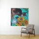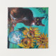 SUNFLOWERS WITH CAT IN BLUE TURQUOISE TAPESTRY