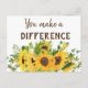 Sunflowers with You Make a Difference Quote Postcard