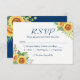 Sunflowers Yellow Navy Blue Rustic Wedding RSVP