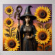 This whimsical poster features a fun raised texture background in soft sunny shades, with a positive empowered Witch standing tall and proud with her sunflowers. Finished as a mixed media art print.