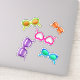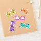 Sunglasses shaped stickers for a girl’s birthday or summer party. Use as favours for kids, on scrapbook pages, or add to packaging and envelopes. Fun girl’s sunglasses in five colours and various shapes cover each sheet. The sheets have size options depending on what size sticker is needed. Colours are lime green, hot pink (with heart-shaped lenses), purple, orange and blue with green.