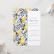 This bridal shower invitation is a delightful prelude to the joy and beauty of the upcoming wedding, featuring a radiant design that combines sunlit lemons and deep blue olives with the timeless elegance of azulejo patterns. The invitation's left side is a lush display of citrus fruits and foliage, creating a fresh and inviting feel. The right side offers a clean, white background where the event details are presented in a sophisticated script, announcing the celebration of the bride-to-be. This card is perfect for setting the tone for a bridal shower that's as bright and joyful as it is elegant, suitable for gatherings at a family home, a garden, or even a quaint countryside venue.