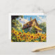 Sunlit Farmhouse with Blooming Sunflowers Postcard