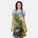 Step into a storybook moment with this enchanting garden scene, where soft golden sunlight filters through lush trees and spills across a cobblestone path leading to a welcoming open gate. Bursting with vibrant cottage blooms—dahlias, hollyhocks, foxgloves, and delphiniums—the garden brims with life and color, painted in soft pinks, sunny yellows, and deep corals that blend seamlessly with cool lavender and sky blues. A rustic wooden bench nestled among the flowers invites quiet reflection, while dappled light and painterly textures evoke a peaceful, whimsical mood. The overall style is dreamlike and romantic, steeped in cottagecore nostalgia and wrapped in the cozy serenity of an early morning bloom. AI generated artwork.