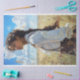 This design radiates warmth and independence — featuring a young woman with flowing dark curls, suspenders, and a soft white blouse, standing tall beneath a bright summer sky. Perfect for adding character to farmhouse furniture, DIY wall panels, wooden trays, and rustic home décor. Great for decoupage projects that tell a story, from journal covers to shadowbox art. A must-have for furniture flippers and creative crafters looking for timeless prairie beauty.