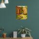 Sunlit Stone Courtyard Garden Path Watercolor Art Poster