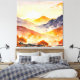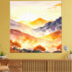 "Sunlit Trees and Shadowed Valleys" captures the tranquil beauty of a golden sunrise illuminating mountain peaks and valleys. Warm sunlight filters through vibrant trees, casting soft shadows over the rugged terrain. This serene watercolor scene evokes peace and connection with nature.