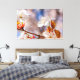 A cluster of sakura flowers of almost white colour against the smooth background of blue sky and cherry blossoms. Fresh orange leaves, green stems. The unbelievable beauty of the spring season. An extra-large digital painting from a photograph. Awesome floral stretched canvas print to decorate your place or to be used as a gift on weddings, birthdays, baby showers, or any other event. You can transfer this design to a variety of affordable products, including faux wrapped canvas print, poster, acrylic, metal, wood wall art, triptych, tapestry, a plaque with easel, photo block, puzzle, postcard, flat, and magnetic cards, magnet, wall clock, throw pillow, blankets, ceramic tile, keepsake box, trinket tray, trivet, coasters of any kind, playing cards. Just choose the product from the scrollable option "Transfer design to a product". This design is open for customisation. Just use the "Personalise", or "Edit design" (as the case may be) button of the blue colour, or the link "Details" --> "Click to customise further". You will be transferred to the "Design Tool" page where you can easily use the "FILL/FIT" option to ADJUST THE DESIGN TO THE SIZE AND SHAPE of the product, rotate it, mirror, and change the type, colour of the font (if any), or to add your own text from the scratch. Just be creative, customise, buy one, have fun and be happy!