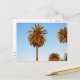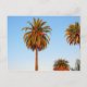 Photograph of sunny california palm trees against a blue sky - on a postcard