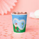 This fun Christmas in July paper cup makes a perfect summer party decor for a pool gathering. Make it a fun north pole themed extravaganza with Santa Claus in his swimming trunks next to a cool swimming pool and diving board. Jolly Saint Nick is drawn in a red bathing suit on this cool blue plates.