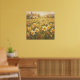 Artwork of a field of daffodils with a sun shining along the horizon. A rolling meadow of daffodils set against a rustic rural backdrop. The composition is defined by the dramatic use of "God rays" (shafts of sunlight breaking through the haze) to illuminate the foreground blooms. The color palette is warm, dominated by buttery yellows, soft creams, and earthy greens, creating a cohesive and inviting visual temperature. Perfect for brightening up a kitchen, nursery, or entryway that needs a permanent splash of joy. The soft, pastel-like texture adds a dreamlike quality, making the light rays feel tangible and warm. It’s a scene that evokes the feeling of fresh beginnings, quiet country mornings, and the simple pleasure of sunshine on your face.