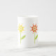 A Bone China Mug with an original Mango Moon Studio illustration of dainty daisies in enchanting lavender, sunny yellow, vibrant red, and calming blue hues, capturing the essence of spring.