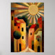 Sunny Day in Small Town AI Art Retro Illustration Poster