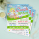 Bring your Easter Egg Hunt event to life and advertise with this adorable & colourful flyer featuring a white bunny in a basket filled with colourful Easter eggs, butterflies, flowers, grass, a blue and sunny sky filled with clouds.