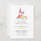 Brightly coloured wildflower watercolor wine tasting rehearsal dinner invitation.