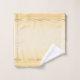 An elegant bathroom towel set featuring a wavy design in sunny ochre yellow and ivory with gold. Great to create an airy and light atmosphere in the bathroom.