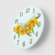 This sunflower clock would brighten any space. Perfect for country or rustic decor. It has a print of a cluster of sunny yellow sunflowers with rusty orange centres. The green leaves add contrast. I have used a very pale blue background to suggest a summer sky. The large numbers are brown and easy to see. Matching wall art is in my "Posters and Wall Art" collection. Other clocks are in my "What Time is It" collection.