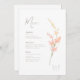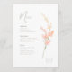 This chic wedding suite with it's warm sunny colour palette, handwritten script font and delicate wildflower arrangements has a timeless and sophisticated look that will impress your guests and help make your special day unforgettable. This striking wedding menu, shown here on white with an airy wildflower arrangement. provides a template to easily add your menu selections. Search ID1023 to see all the products in this wedding suite.