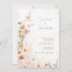 This chic wedding suite with it's warm sunny colour palette, handwritten script font and delicate wildflower arrangements has a timeless and sophisticated look that will impress your guests and help make your special day unforgettable. The striking wedding invitation, shown here on white with airy wildflower borders. provides a template to easily add your event details. Search ID1023 to see all the products in this wedding suite.