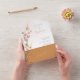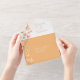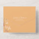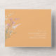 This chic wedding suite with it's warm sunny colour palette, handwritten script font and delicate wildflower arrangements has a timeless and sophisticated look that will impress your guests and help make your special day unforgettable. The striking all-in-one RSVP and wedding invitation, shown here on white with airy wildflower borders and cheery peach orange exterior. provides a template to easily add your event details and mailing info. Search ID1023 to see all the products in this wedding suite.