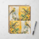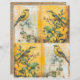 This striking mixed-media image features a pair of vibrant yellow warblers perched amidst lush greenery and delicate flowers. The birds are set against a backdrop of aged, textured pages that add an antique, ephemeral quality to the scene. This piece would make a beautiful addition to any nature-inspired, vintage-themed home decor or stationery. It could be utilised in a wide range of creative projects, such as junk journalling, collage-making, scrapbooking, and more. The rich colours, intricate details, and nostalgic charm of this artwork capture the essence of the natural world in a captivating way.