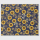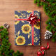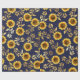 Sunny Yellow Gold Navy Sunflowers Leaves Pattern Wrapping Paper