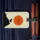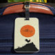 This luggage tag design features a cute illustration of a crowing rooster during sunrise.