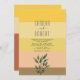 Botanical, simple, minimal, sunrise boho yellow and terracotta wedding invitation in combination with trendy colour scale with greenery, monogram back and modern calligraphy script.