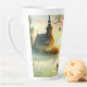 Sunrise Church with Birds in Misty Meadow Latte Mug