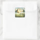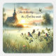 Sunrise Church with Birds in Misty Meadow Square Sticker