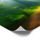 A poster depicting sunlight peeking through the trees, lighting up a dark forest.