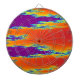 This awesome dart board features a fractal that resembles a sunrise. On the left there are lots of purple patterns that look like wispy clouds of darkness and to the right of them are areas of orange morning sunshine.