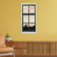 Sunrise Landscape Windmill Faux Window View Poster Print. A beautiful window view poster print with a sunrise rural windmill fantasy landscape with a windmill and canal in Volendam, Holland and a orange sky with rising sun photography poster print. This beautiful Holland windmill view poster artwork is fully customisable, add your texts and images! A beautiful Holland nature windmill landscape at dawn faux window view landscape gift poster to hang on your wall at home in the basement or in the office for your best friend or family members!