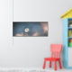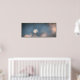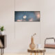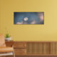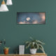 This poster features a full moon still shining in the sky at sunrise. The sky is getting light. The clouds are shades of pink and orange. The face of the moon is very visible. I digitally enhanced this original photograph to emphasize the dramatic feeling.